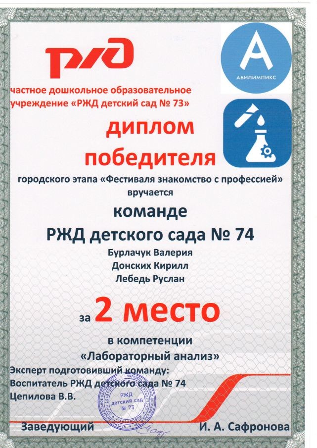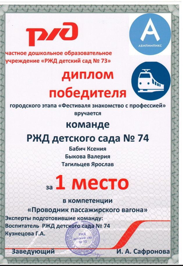 Городской этап фестиваля знакомства с профессией среди детей с ОВЗ и инвалидностью РЖД детских садов г. Хабаровска завершился нашей победой в двух номинациях!